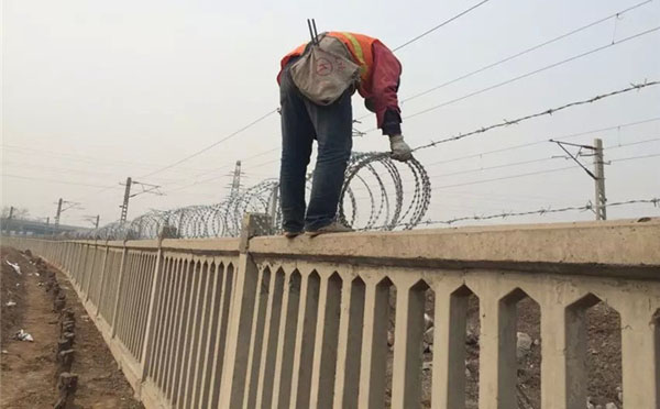 蛇腹形刀刺网施工主要包括以下内容:清理场地确认硬化程度可直接安装支架底盘、安装支架、拉线布置、蛇腹形刀刺网安装。